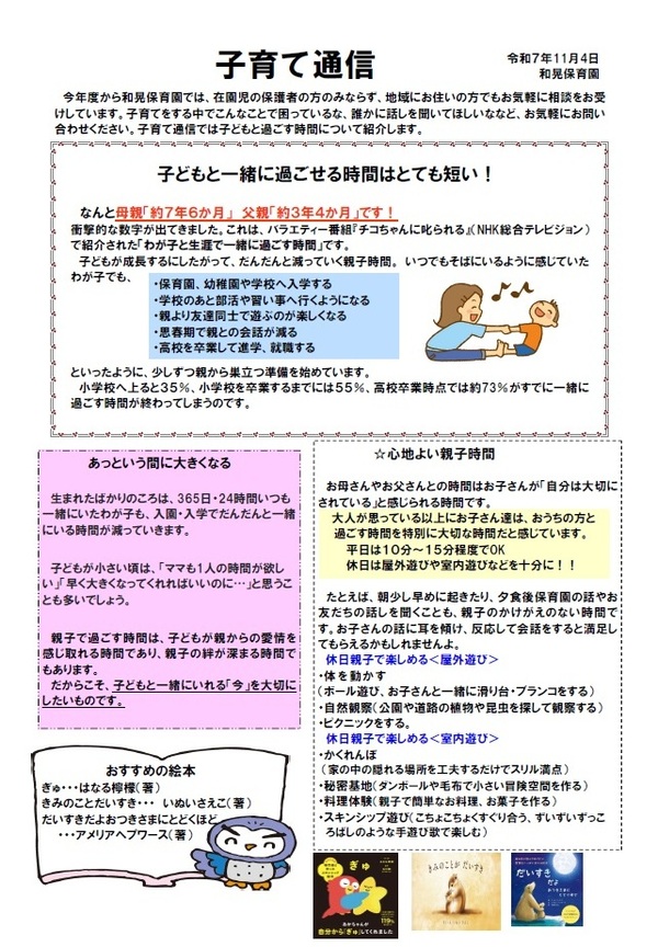 「子育て通信」では、親子の関わりや子どもとの時間の大切さについて紹介致します。