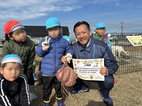 11月19日にYKKAP様の芋ほり体験教室に参加しました。子どもたちは移植ごてで懸命に土を掘り、体全体を使って大きい芋を掘り起こし、いっぱいとれました!3,300gの芋を掘り当て、大物賞を頂きました。