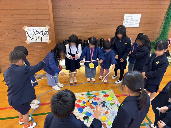 11月26日に千丁小学校の1年生との交流会に行きました。1年生のお兄さん・お姉さんと一緒に色々な遊びを楽しみながら過ごしました。「こうするんだよ〜」と教えてくれる1年生たちの優しさの中に学びの大切さをほんの少しだけ感じていました。帰る時には、「もっと遊びたいー!」というきりんぐみさんのお友だち。あっという間に時間が過ぎてしまいましたね。